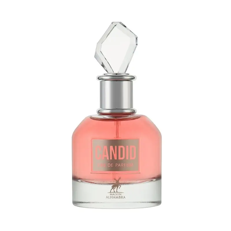 Candid de Maison Alhambra est un parfum féminin de la famille Fruity Floral Chipre. Candid est un parfum irrésistible qui capture l’essence de la sensualité et de l’audace. Les notes de tête vibrantes d’orange sanguine et de mandarine se fondent dans une ouverture d’agrumes intrigante, tandis que les notes de cœur, caractérisées par le miel, le gardénia, la fleur d’oranger, le jasmin et la pêche, créent un cœur floral et fruité qui enchante les sens. Les notes de fond de cire d’abeille, de caramel, de patchouli et de réglisse confèrent à Candid une profondeur enveloppante et une persistance irrésistible. Ce parfum est une déclaration audacieuse d’individualité et de glamour. Découvrez le côté sensuel de Candid , un parfum qui incarne l’énergie vibrante des notes d’agrumes, la douceur enveloppante des fleurs et la séduction irrésistible des notes de fond. Parfait pour ceux qui recherchent un parfum qui exprime une personnalité et un charme uniques. Candid est le compagnon idéal pour ceux qui veulent laisser une impression durable partout où ils vont. Élevez votre expérience olfactive avec ce parfum inoubliable.