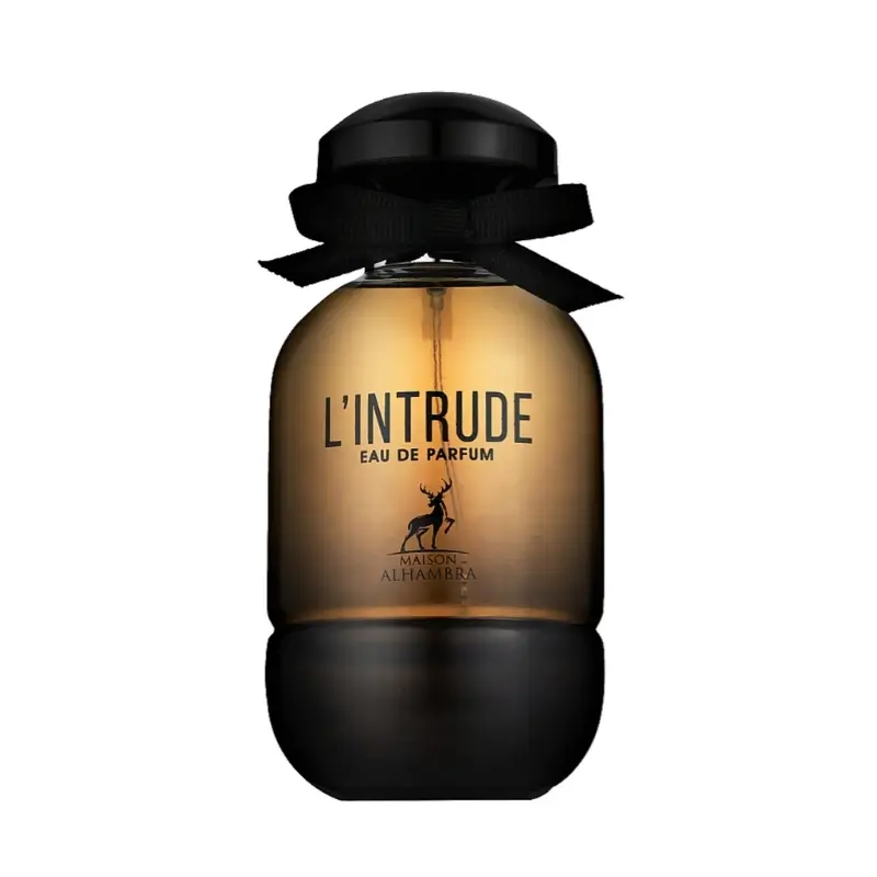 L’Intrude de la Maison Alhambra , une caresse florale-fruitée s’ouvre sur des notes exotiques de grenade épicée entremêlées de lys frais et d’un reflet savonneux d’aldéhydes. La fragilité des pivoines alterne avec la rose veloutée et l’ylang-ylang crémeux, auxquels s’ajoutent opulemment le gardénia et la tubéreuse enivrants. Le musc dans un duo sensuel avec la vanille gourmande répand une douce tendresse et la parade finale appartient au ton doux du bois de santal avec l’ambroxan.