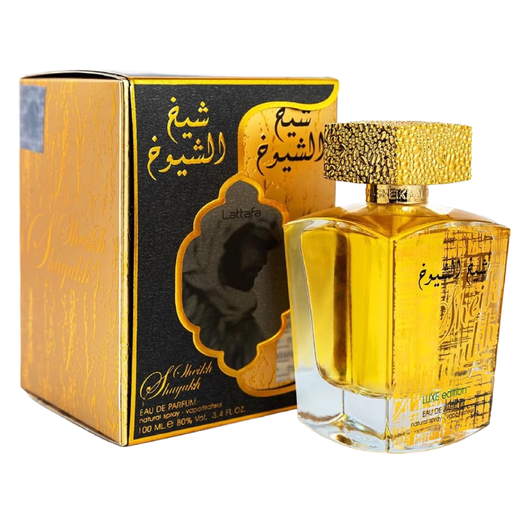 Sheikh Al Shuyukh Luxe Edition Lattafa | Inspiration Shaghaf Oud Swiss Arabian (100 ml) Une fragrance d’apparat, symbole de richesse et de puissance, où l’or du safran rencontre la douceur du caramel. Un sillage de prestige Sheikh Al Shuyukh Luxe Edition est bien plus qu’une simple Eau de parfum ; c’est une parure olfactive. Conçu par la célèbre maison Lattafa , ce joyau est l’interprétation royale du très prisé Shaghaf Oud de Swiss Arabian . Imaginé pour ceux qui ne craignent pas d’affirmer leur présence, il offre une expérience sensorielle intense et enveloppante. Au Maroc, il est devenu le compagnon indispensable des grandes célébrations et des soirées où l’élégance doit être absolue. 🧭 Voyage au cœur de l’opulence L’évolution de ce parfum est une véritable montée en puissance : L’Ouverture Royale : dès la première vaporisation, un mélange noble de rose de Damas, de cannelle épicée et de safran précieux s’installe. Un départ riche qui annonce immédiatement la couleur du luxe. Le Cœur Gourmand & Terreux : Le parfum se transforme ensuite en une caresse addictive. Le caramel fondant apporte une sucrosité irrésistible, parfaitement équilibrée par la profondeur du patchouli. L’Apothéose Ambrée : Le sillage final est une forteresse de longévité. Les notes boisées s’entrelacent avec une vanille onctueuse, l’ambre et l’ambroxan pour une signature qui marque les esprits pendant des heures. 🚀 Caractéristiques & performance Aspect Détails Marque Lattafa Perfumes (Dubaï) Inspiration Shaghaf Oud (Swiss Arabian) Genre Unisexe (homme & femme) Famille olfactive Orientale Épicée Gourmande Tenue Exceptionnelle (plus de 12 h) Sillage Puissant et remarquable